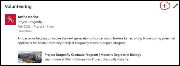 Please feel free to add your volunteering work as a Dragonfly Ambassador to LinkedIn. Here is a document detailing how to do that, provided by program alum Allison Homler (thanks, Allison!)