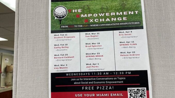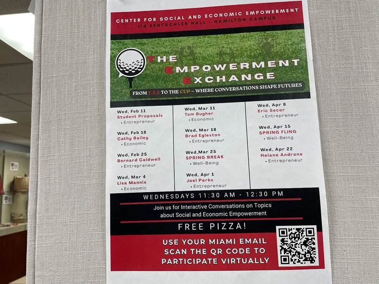 Wednesday, February 11th, was the first TEE Time of the 2026 Spring semester. The Empowerment Exchange (TEE Time for short) is an informal weekly meeting, with or without scheduled speakers who lecture on various subjects. It is held in the Center for Social and Economic Empowerment in Rentschler Hall, on the Hamilton campus of Miami University, from 11:30 to 12:30 on Wednesdays. These meetings began last semester as an experiment headed by Dr. Bennyce Hamilton, who was very pleased with the success of the program last semester. As always, free pizza was offered to all who attend.
