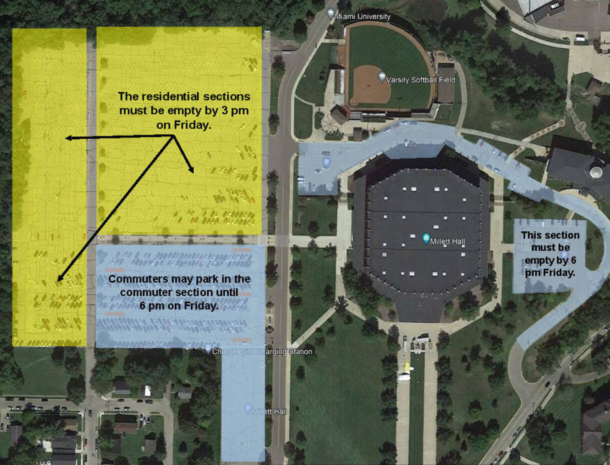 • Student vehicles may return to West Millett Lot at any time on Saturday or Sunday.